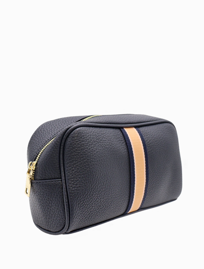 The Daniel Wash Bag in Navy is the ultimate travel accessory to keep your things together and in check. Roomy enough for all his grooming needs, the Daniel opens out wide so everything is easy to see and access. The tan wash bag has a sharp webbing strap giving it a strong and sporty vibe. It’s the perfect gift for any guy on the move.