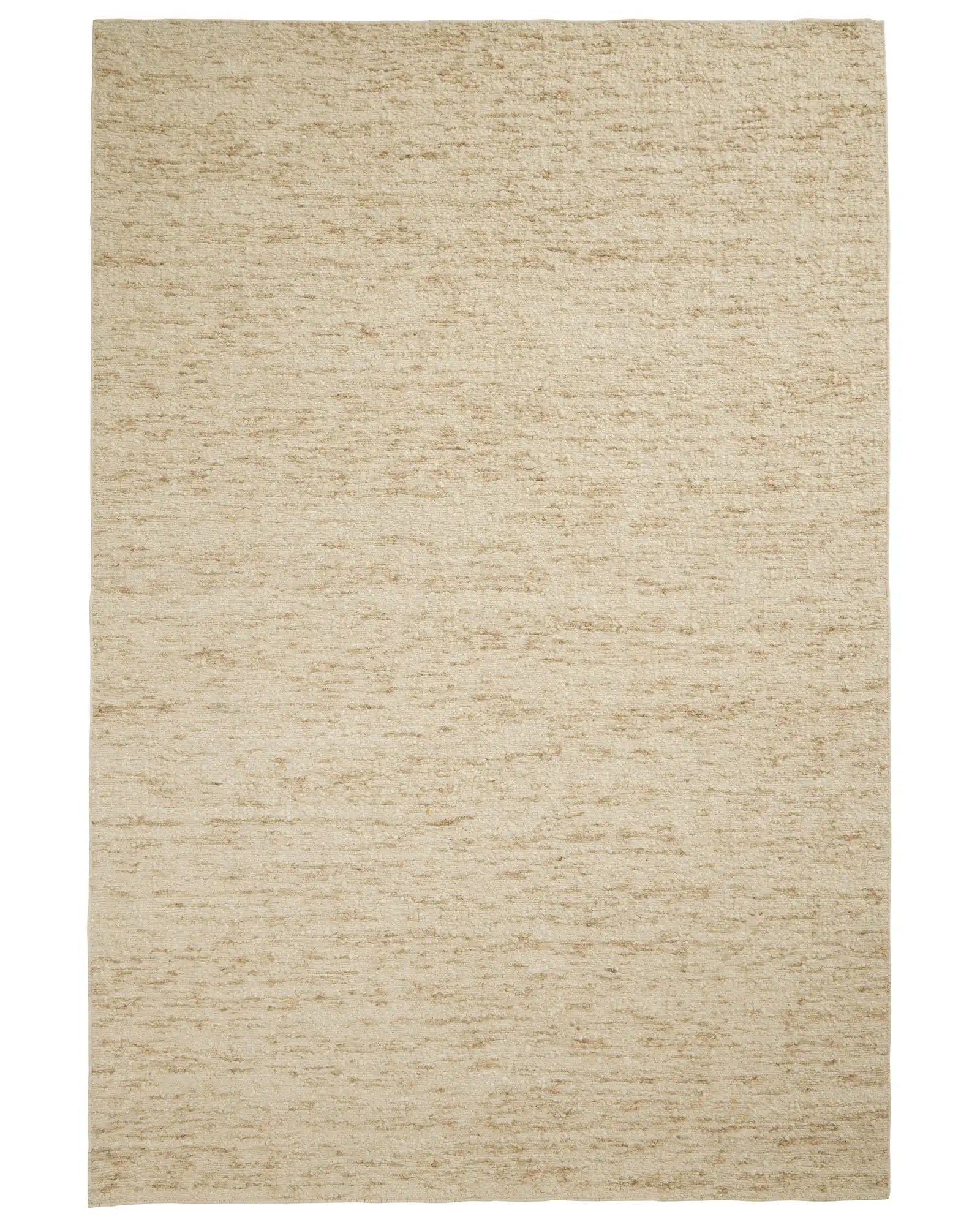 Hand-woven with a distinctive bouclé texture, the Henley floor rug in Ivory brings refined warmth and tactile depth to any space. Crafted from 100% wool, this luxuriously soft rug features a loom-knotted construction with a bound edge, ensuring durability and a premium finish. Its sandy beige hue complements various interiors, making it an ideal choice for those seeking both comfort and sophisticated texture in their flooring.