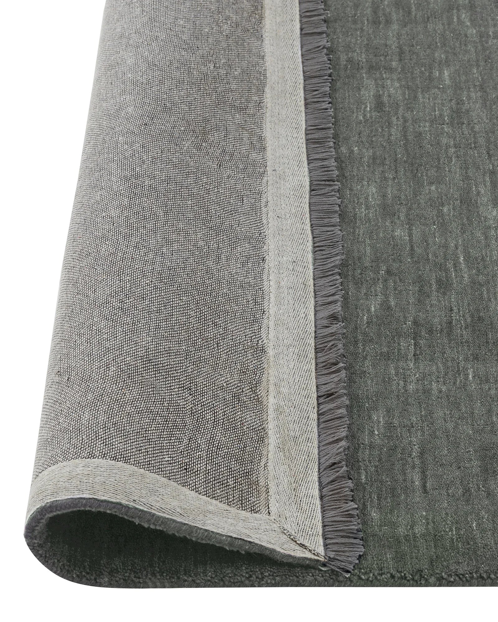 Silvio is a contemporary floor rug designed to enhance any room with its rich texture and refined micro fringe and border detailing. Crafted from 100% wool, it offers a luxurious, soft feel that is both durable and kid-friendly. Fog is a deep grey with subtle blue undertones, moody yet complex, and will style wonderfully in cool, neutral environments., adds understated elegance to bedrooms, dining spaces, hallways, or living areas. Combining timeless style with practical comfort, Silvio provides a sophisticated foundation for your interior décor.
