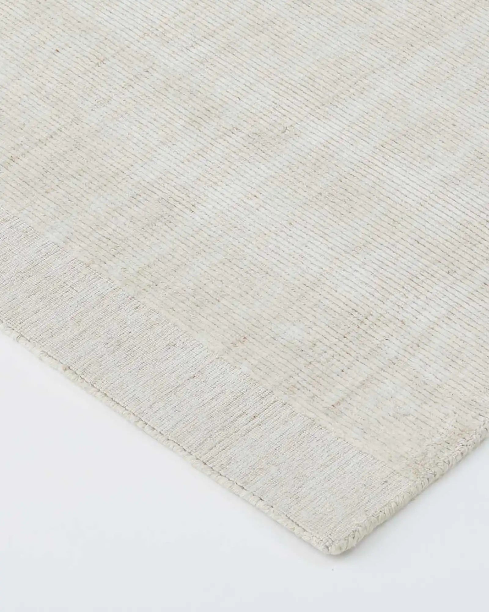 Hand-loomed with a subtle ribbed design, the Travertine rug in Buff combines 90% viscose and 10% wool for a soft, marbled texture that invites relaxation. Ideal for low-traffic areas like bedrooms, its natural fibres and full cotton backing enhance durability while offering a comforting feel.