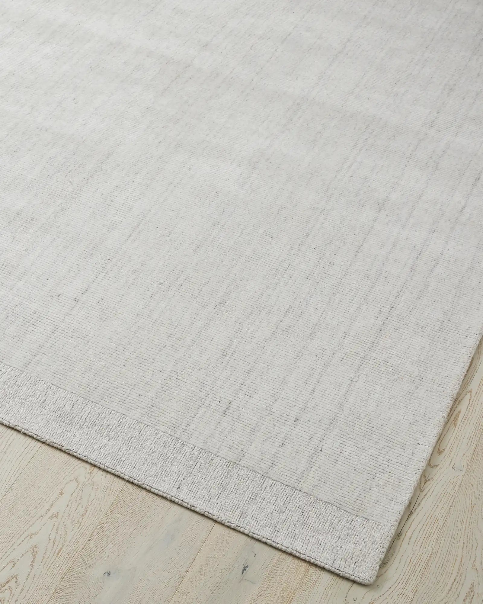 Hand-loomed with a refined ribbed texture, the Travertine rug in Marble blends 90% viscose with 10% wool to create a soft, marbled surface that enhances comfort. Its natural fibres paired with a full cotton backing ensure durability, making it well-suited for low-traffic spaces such as bedrooms. The elegant white shade and sophisticated design lend a timeless appeal, perfect for elevating modern interiors with understated luxury.