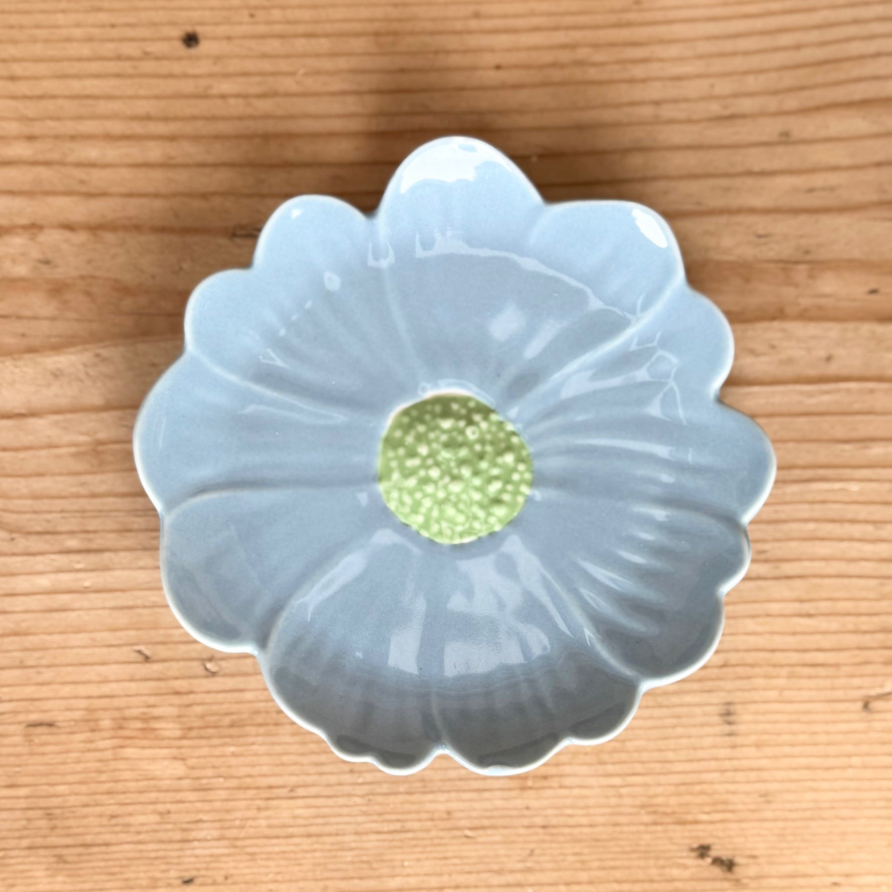 Add a pop of charm to your space with this delightful Flower Trinket Dish. Measuring 10cm in diameter, its stoneware porcelain design features a vibrant soft blue exterior with a sweet pastel green centre—perfect for holding your rings, earrings, or tiny treasures with a splash of playful colour.