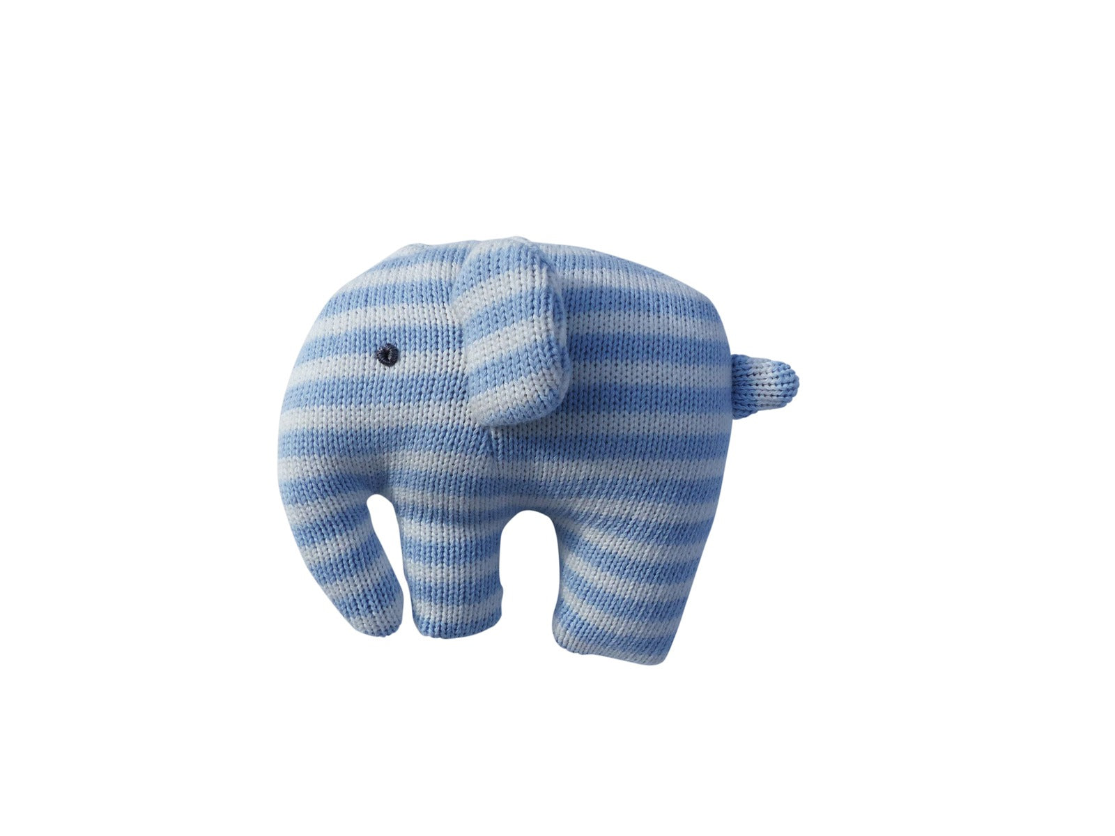 Knitted Elephant Rattle – Blue Stripe