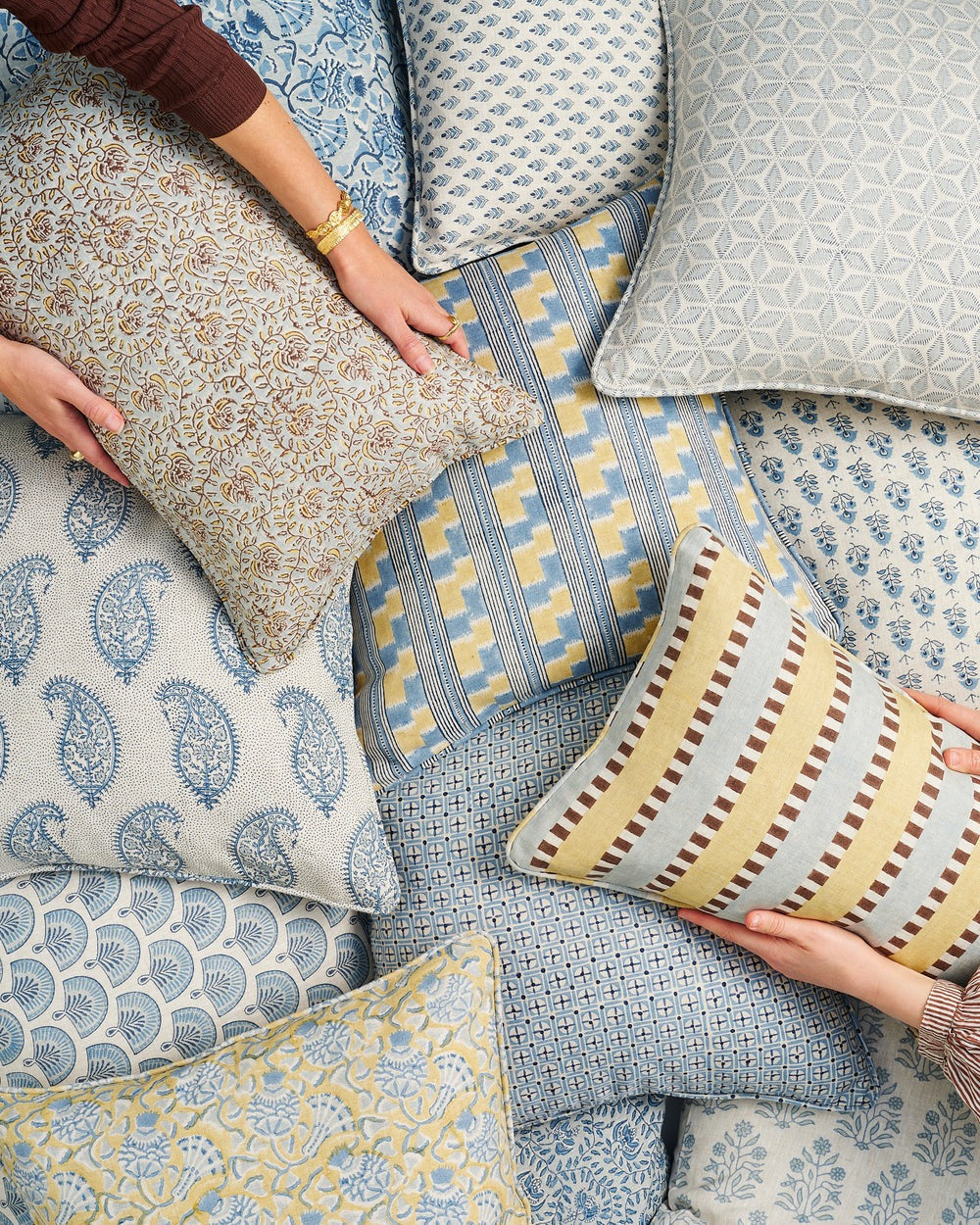 CARE INSTRUCTIONS: Cold machine wash separately on a delicate cycle with a very minimal amount of mild detergent. Do not tumble dry, soak or bleach. Iron at medium setting if necessary. For spot cleaning, gently dab the area with water (do not rub). Due to the nature of hand printed fabrics, variation in colour and pattern may occur. Keep out of direct sunlight to avoid excessive fading.