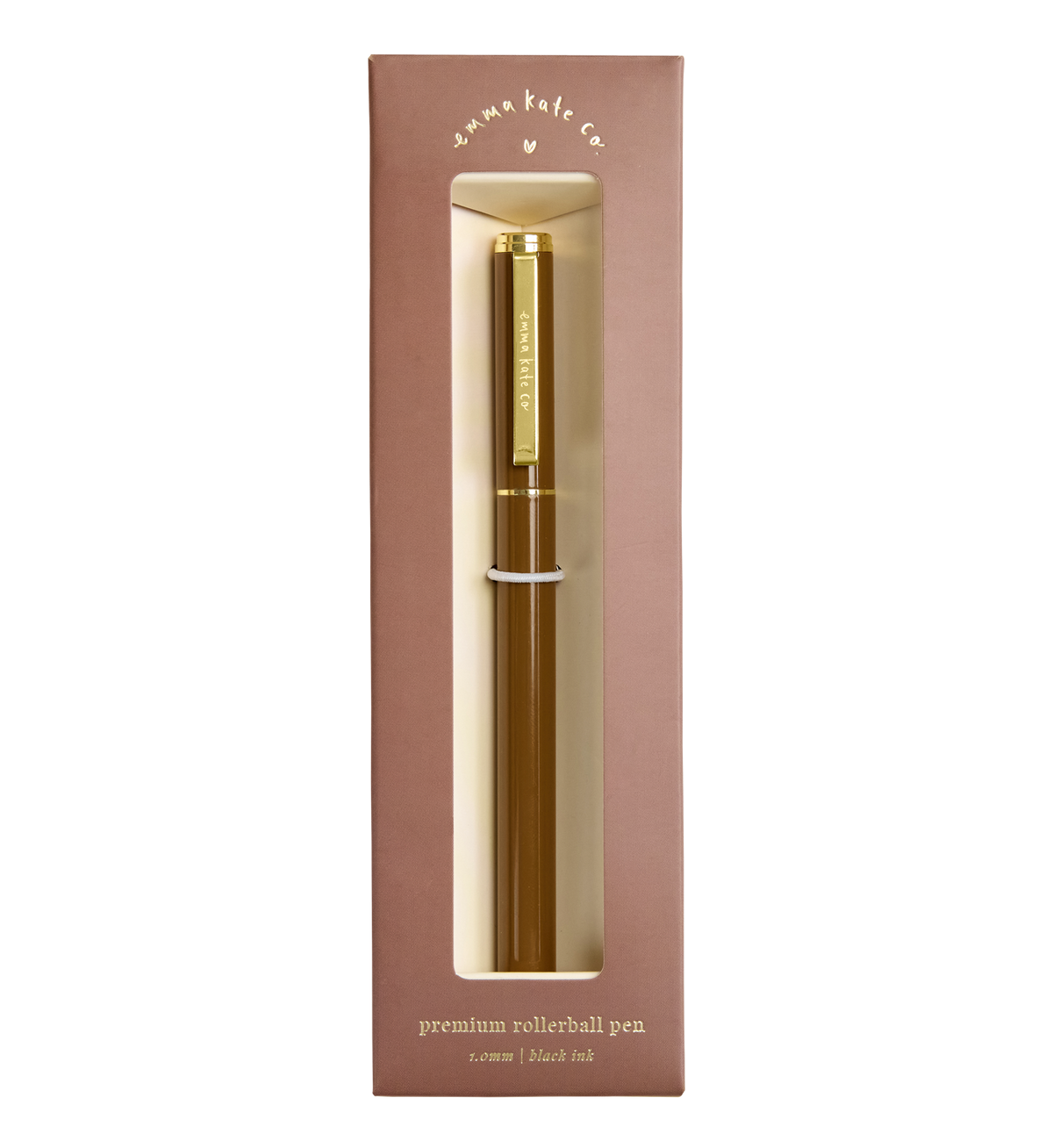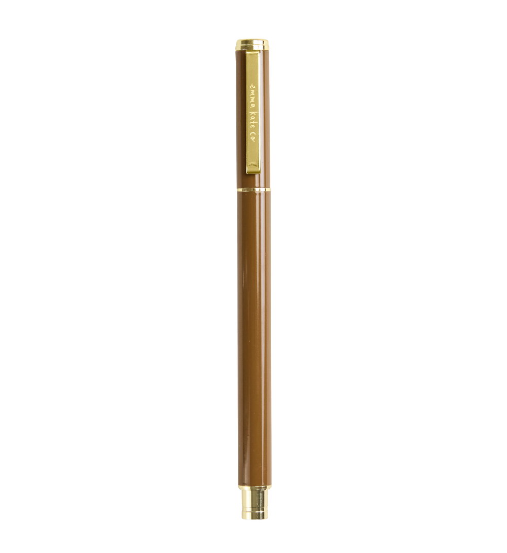 With a focus on both beauty and function, this signature pen is designed with intention and purpose. The rollerball tip writes with ease, gliding smoothly across the page without smudging or bleeding through. It’s weighted, refillable, and finished with gold metal hardware.