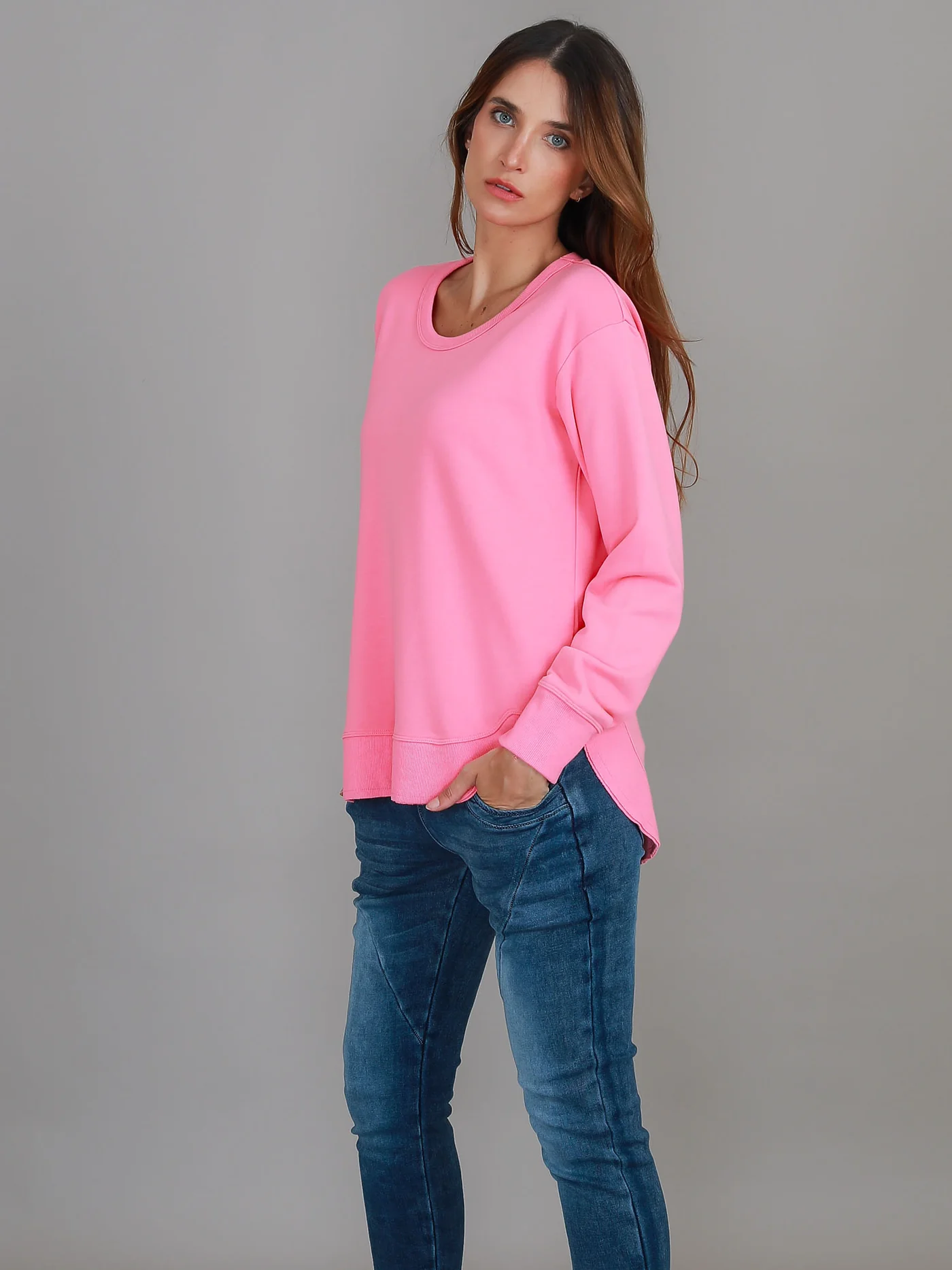 Charlette Curve Hem Sweatshirt - French Rose