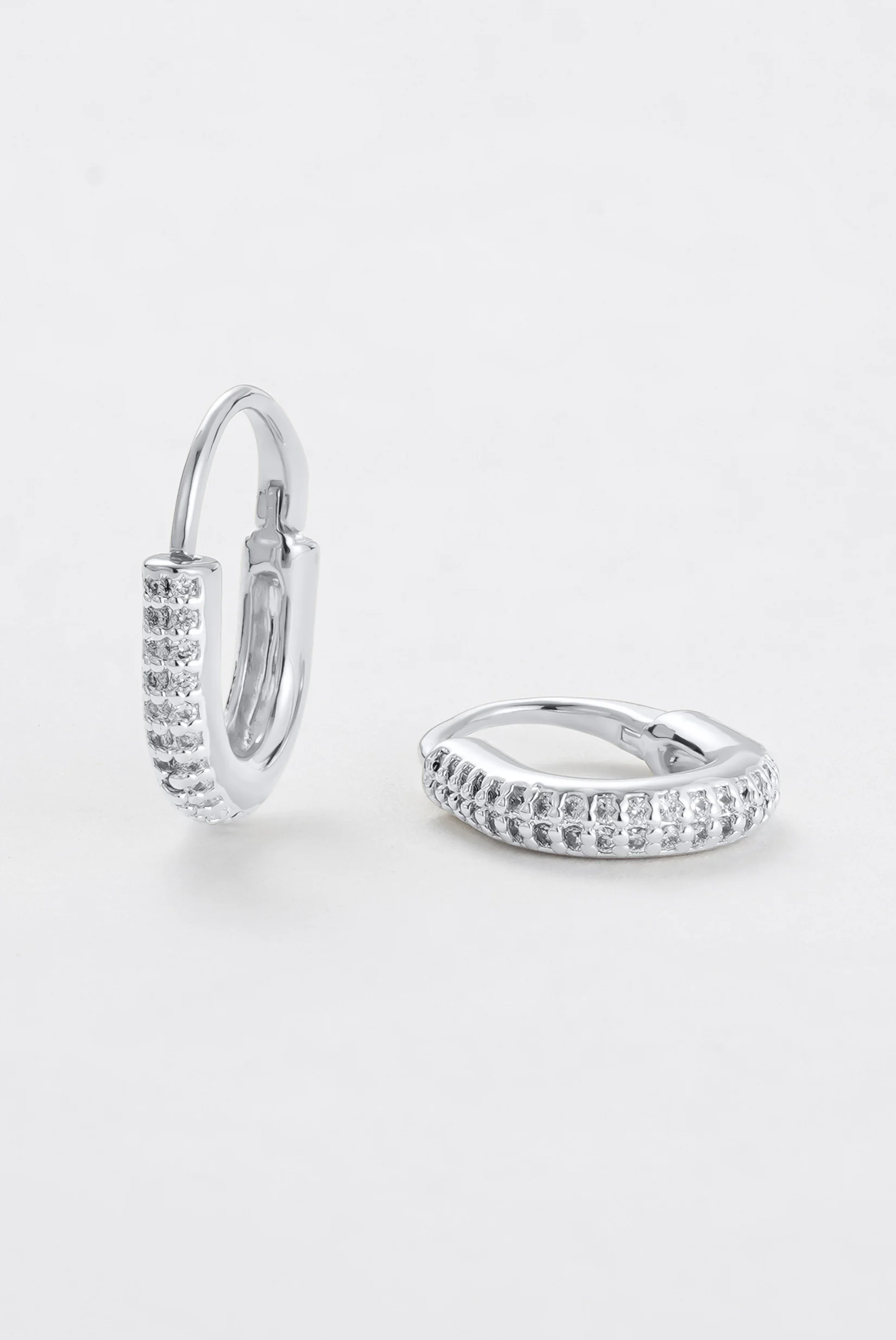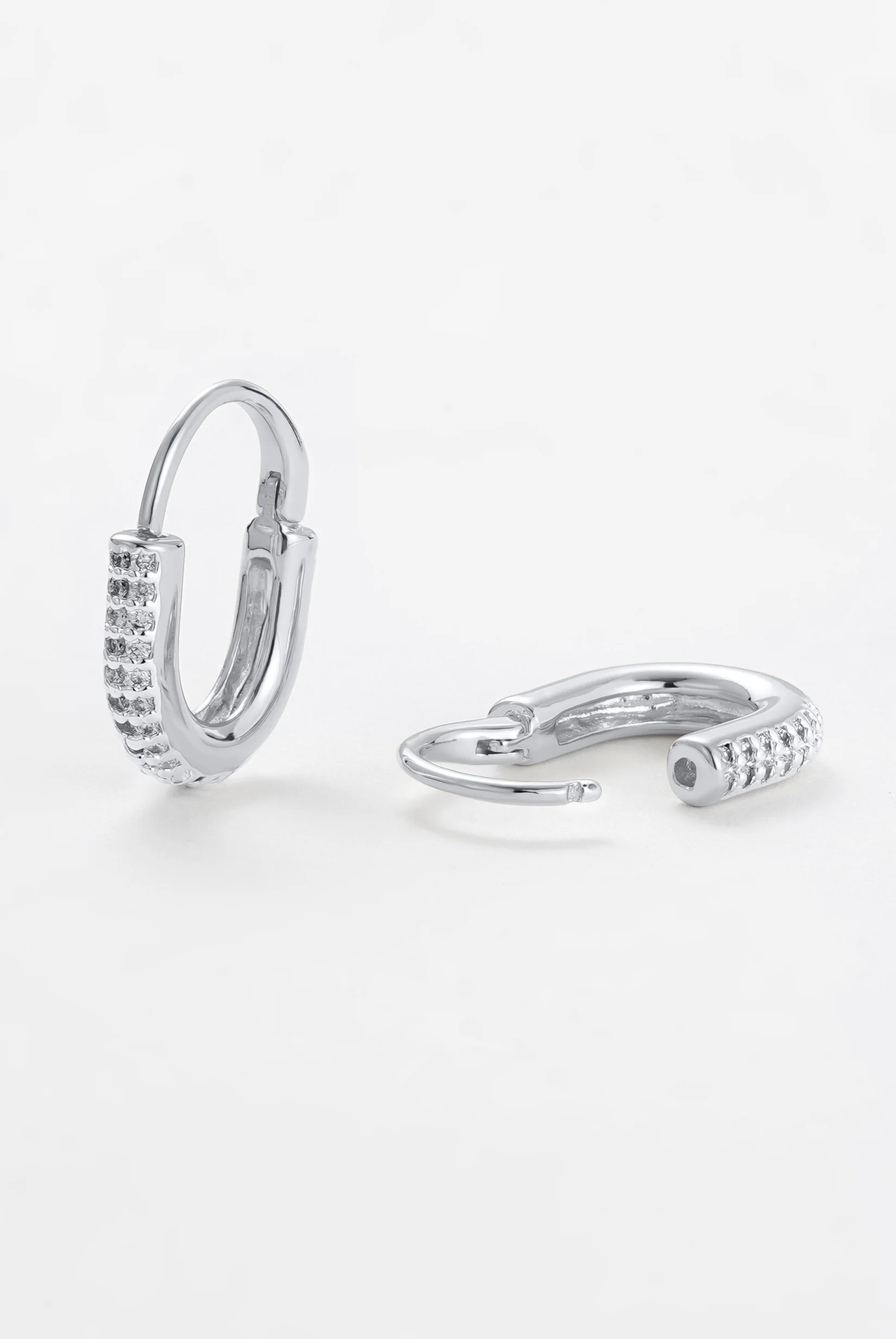 Introducing the Phoebe Hoop in Silver – where timeless charm meets contemporary flair! These beautifully crafted hoops feature a lustrous silver finish adorned with a sparkling line of crystals that catch the light with every turn of your head. Lightweight and versatile, they're your go-to accessory for effortless style, whether you're powering through your workday or stepping out for an evening adventure. Rock them solo for subtle sophistication, or mix and match with your favourite studs to create a look that's uniquely you. The perfect everyday essential that never goes out of style.