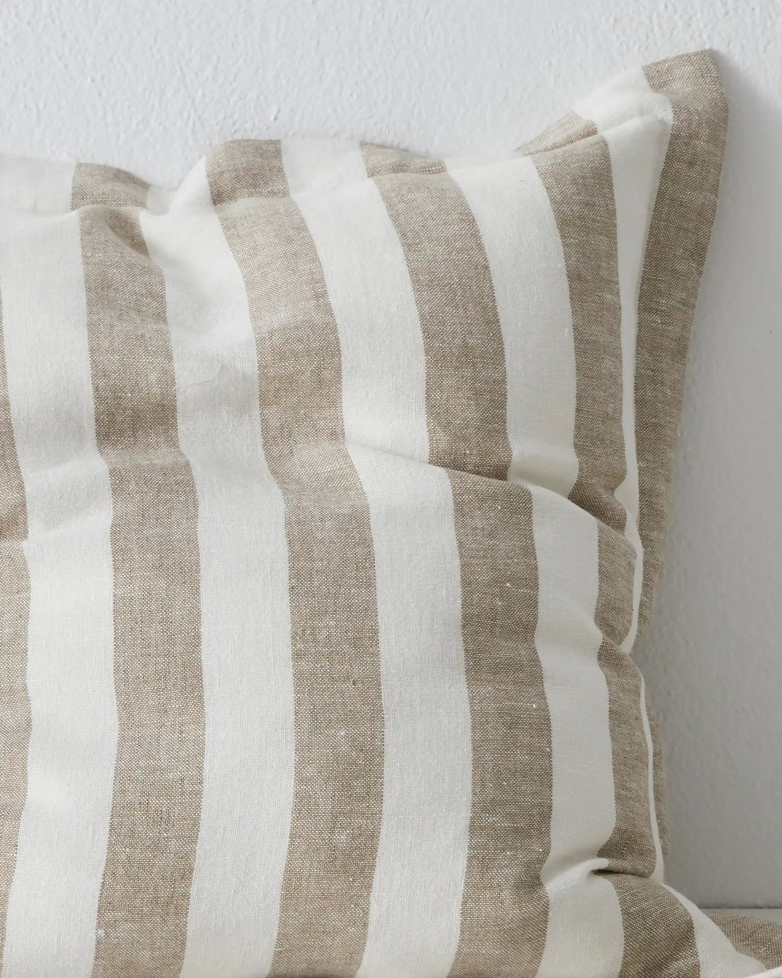 Featuring a playful, four centimetre yarn dyed stripe, the Vito Cushion is crafted from linen that was sourced from Italy and France. Vito Clay brings a beautiful earth-tone with a stonewashed finish and is perfect for a casual living space, or styled with other cushions on the bed for layers and effects.