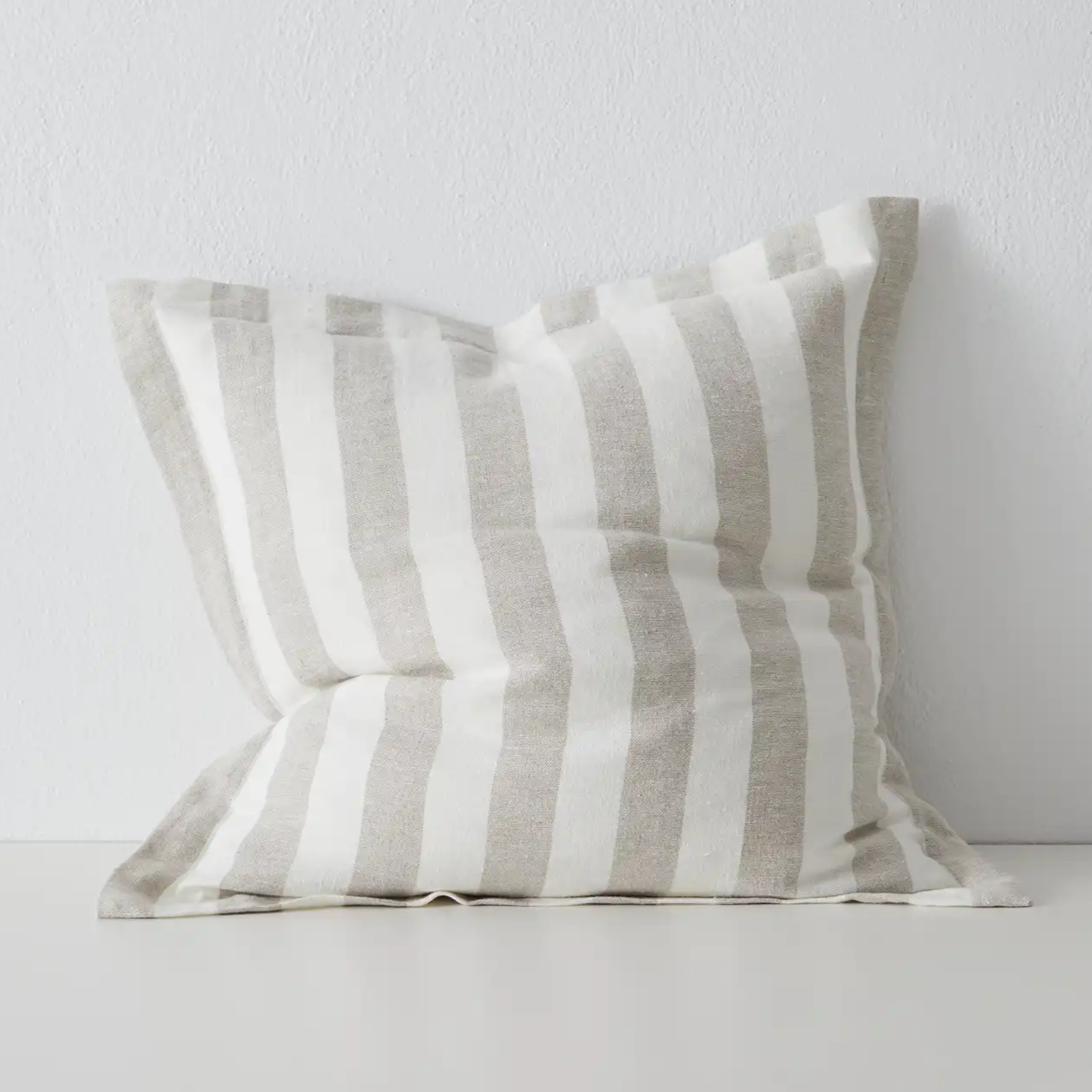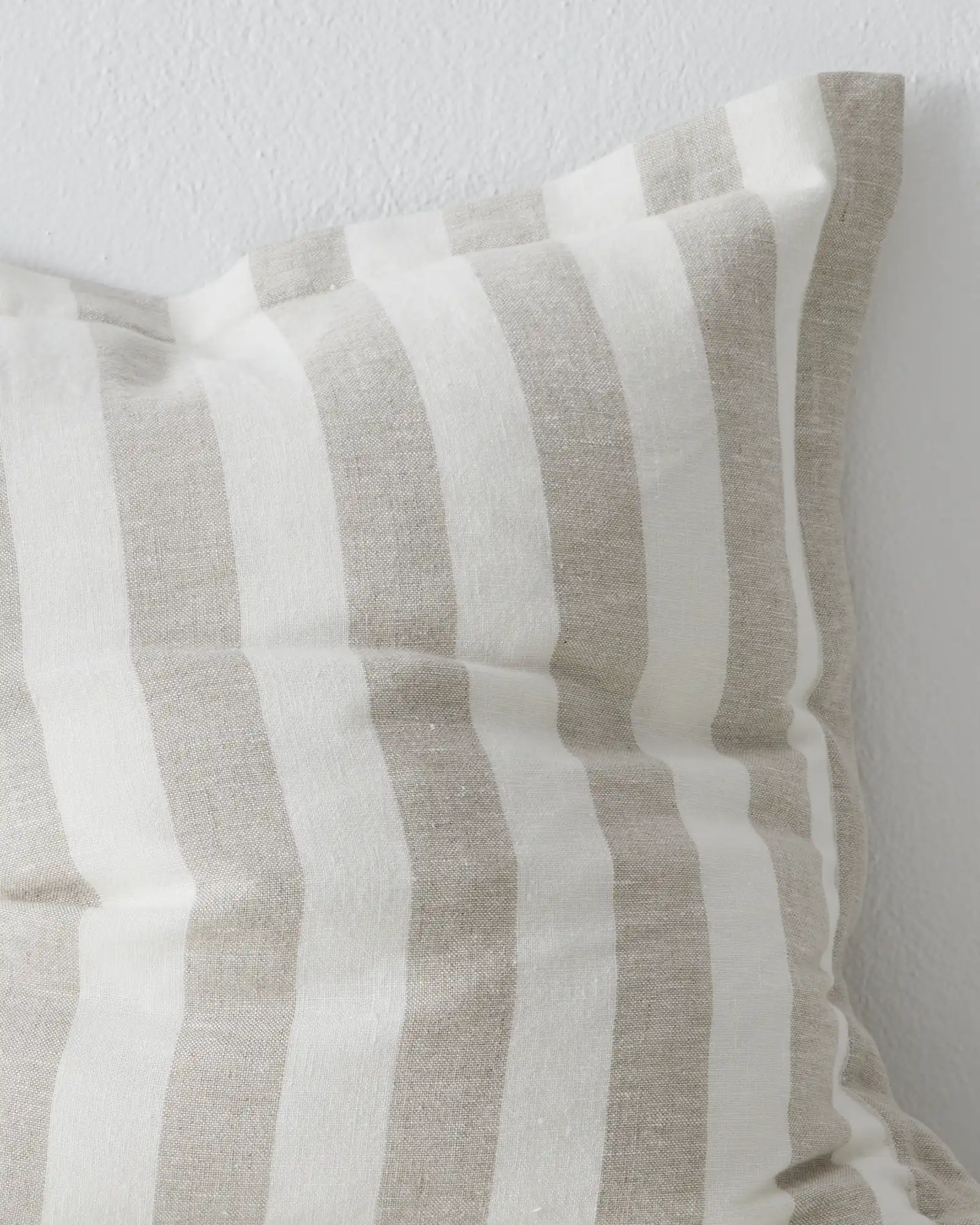 Featuring a playful, four centimetre yarn dyed stripe, the Vito Cushion is crafted from linen that was sourced from Italy and France. Vito Linen brings a relaxed, coastal feel and is a staple and enduring neutral. With a stonewashed finish, it is perfect for a casual living space, or styled with other cushions on the bed for layers and effects.